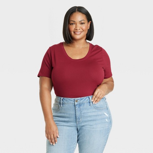 Women s Short Sleeve Relaxed Scoop Neck T Shirt Ava Viv Burgundy 4X