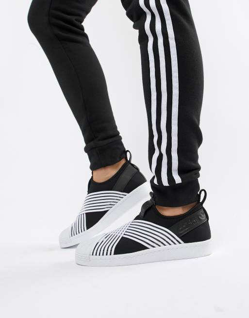 Zapatillas adidas superstar slip on w-negro clearance, Zapatillas sin cierres en blanco y negro de adidas Originals clearance