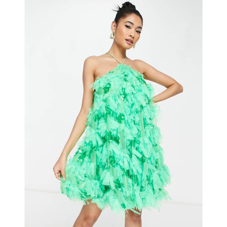 ASOS EDITION backless mini dress in textured mesh in green ASOS