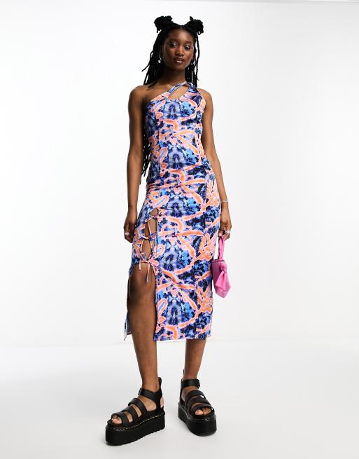 COLLUSION Robe d t mi longue en satin imprim avec bretelles asym triques