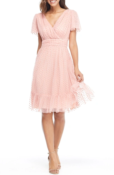 Gal Meets Glam Collection Zelda Retro Dot Shirred Dress In Pink