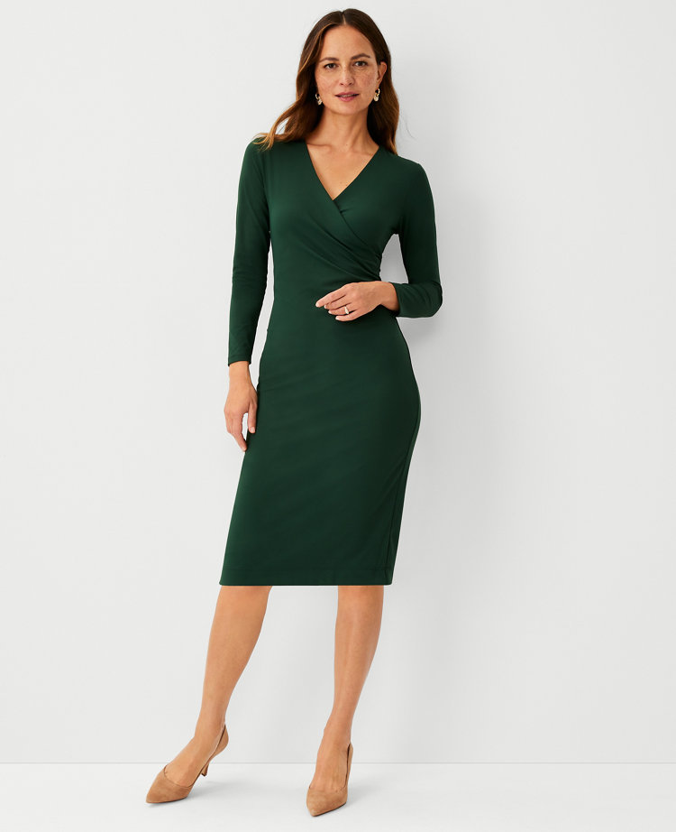Ann taylor green wrap dress clearance, ANN TAYLOR Petite Refined Stretch Wrap Dress Boxwood Green clearance
