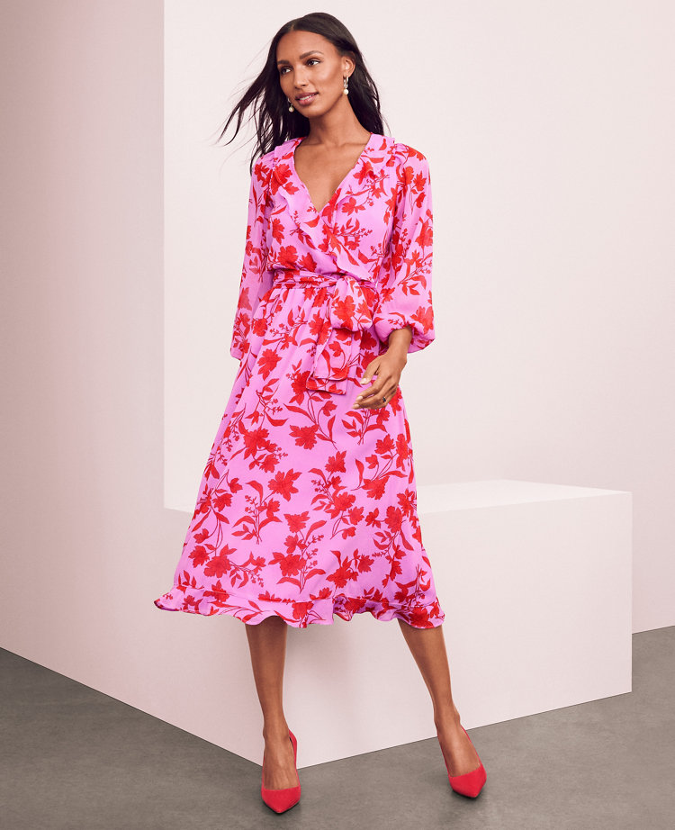 Ann taylor ruffle dress clearance, ANN TAYLOR Floral Ruffle Pleated Flare Dress Midnight Spruce clearance