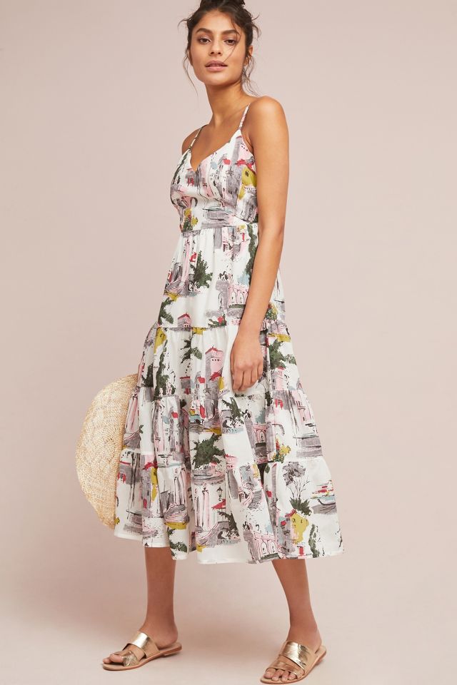 Anthropologie cityscape dress clearance, Anthropologie Lazy Bones Multicolor Cityscape Fit Flare Midi Dress clearance