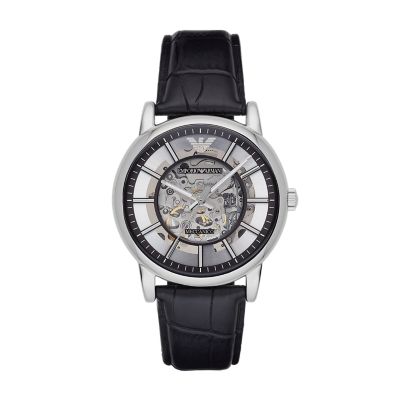 Emporio Armani Luigi Meccanico AR1981 Skeleton black leather watch