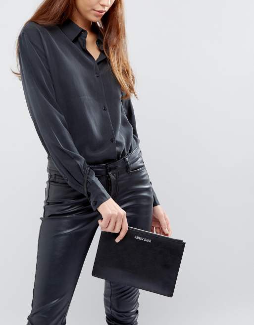 Armani Jeans Leather Zip Top Clutch Bag in Black ASOS