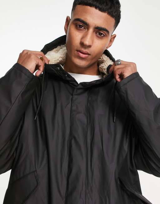 Asos black raincoat clearance, ASOS DESIGN rain jacket in black with borg lining clearance