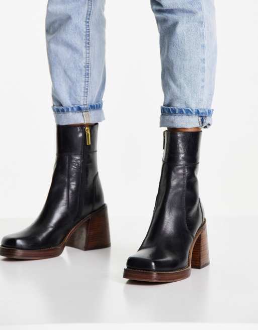 ASOS DESIGN Rueben premium leather mid heeled boots in black