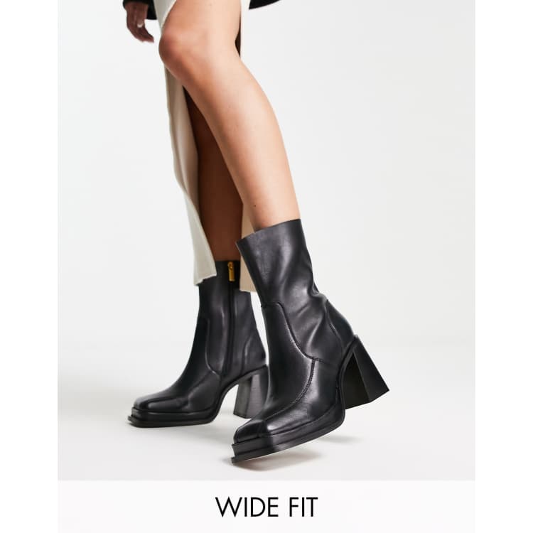 ASOS DESIGN Wide Fit Region leather mid heel boots in black