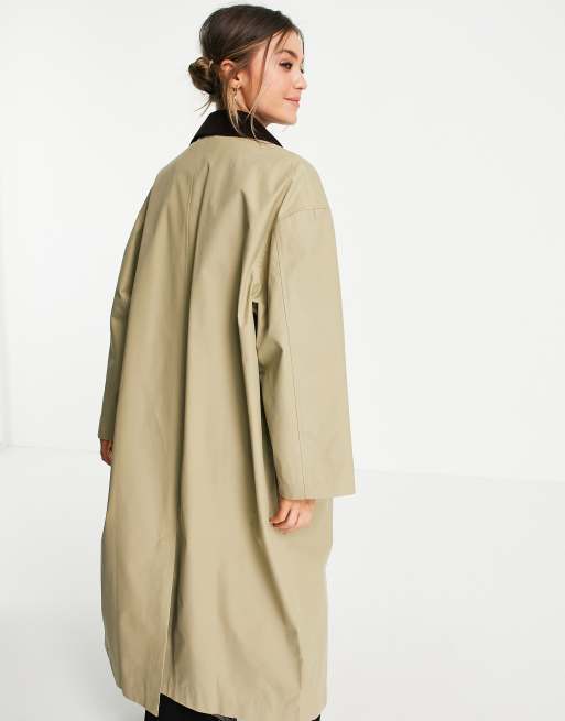 Asos boyfriend trench clearance, ASOS DESIGN cord collared boyfriend trench coat in stone clearance