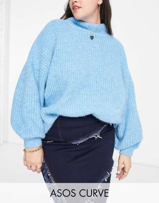Asos curve cardigans clearance, ASOS DESIGN Curve high neck sweater in fluffy in blue clearance