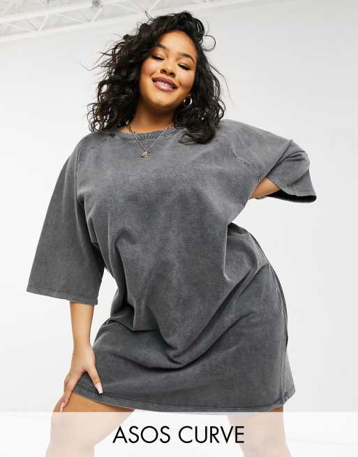 ASOS DESIGN Curve oversized heavy weight t shirt dress in gray acid wash