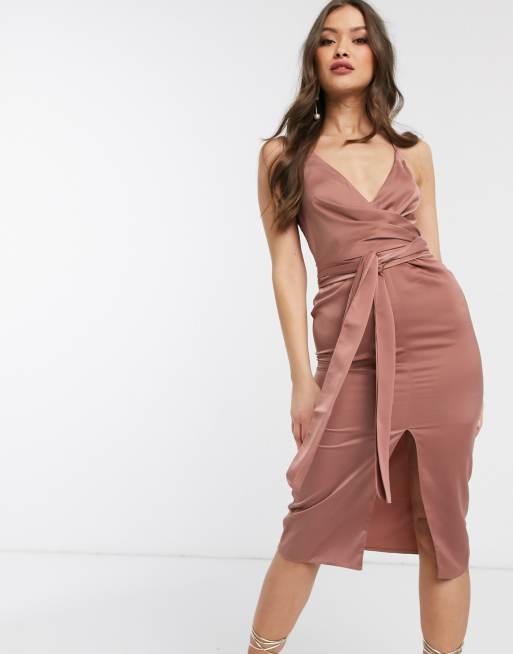 ASOS DESIGN cami midi dress with wrap waist in satin ASOS