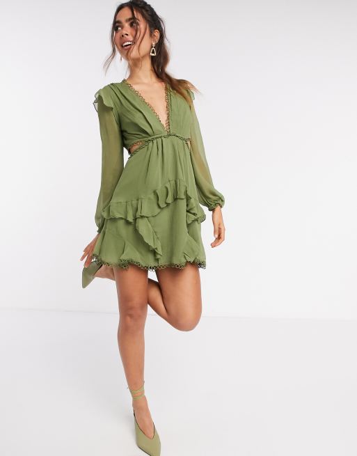 ASOS DESIGN mini dress with long sleeve and circle trim ASOS