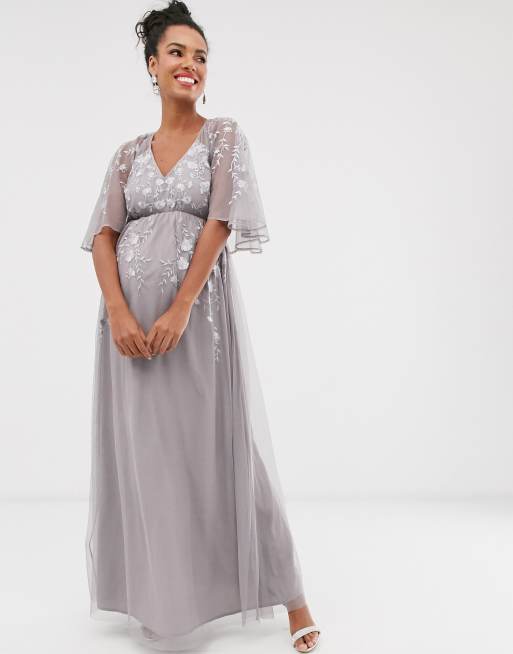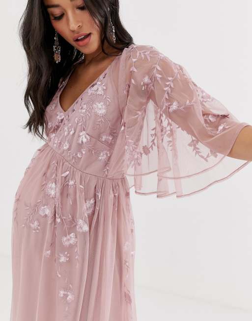 Asos design maternity flutter sleeve maxi dress in embroidered mesh clearance