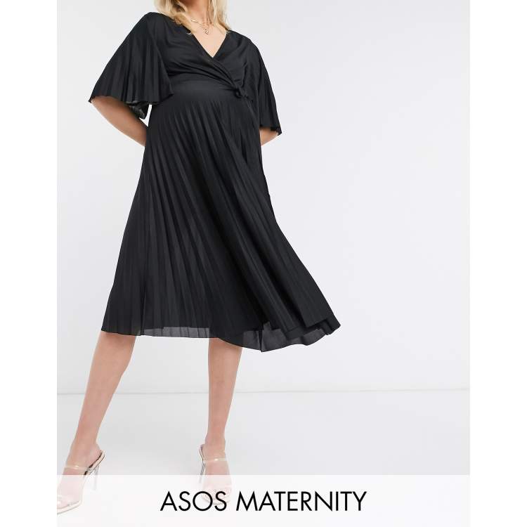 Asos design maternity kimono pleated midi dress clearance, ASOS DESIGN Maternity kimono sleeve pleated wrap midi dress with tie waist in black clearance
