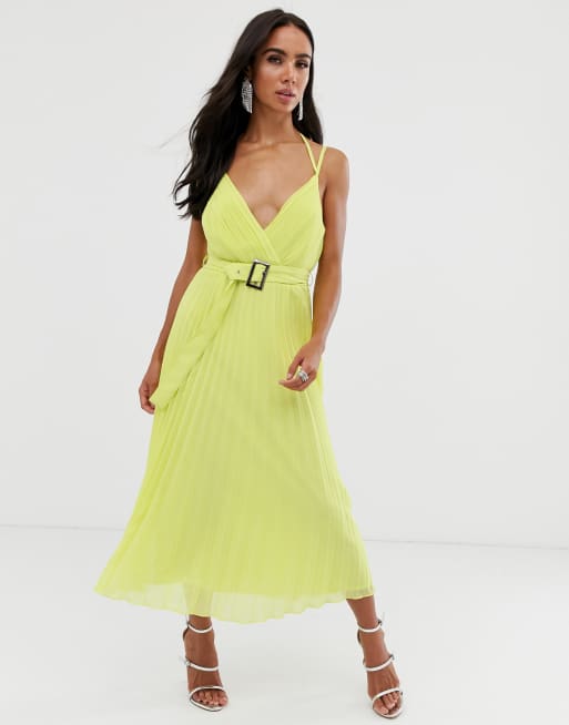 ASOS DESIGN pleated midi dress with cami straps and belt