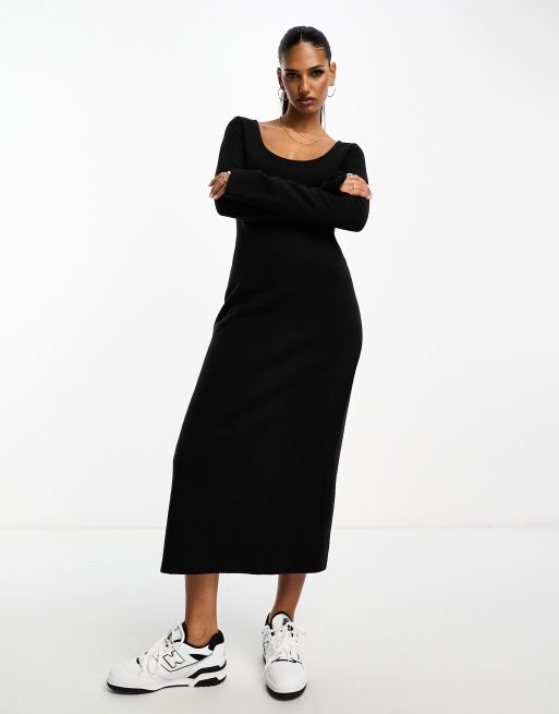 Asos dresses black clearance, ASOS DESIGN supersoft scoop neck maxi dress with flare sleeve black clearance
