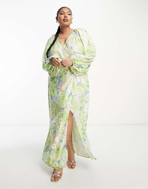 Asos edition sequin wrap midi dress clearance, ASOS EDITION Curve sequin wrap midi dress in floral print clearance