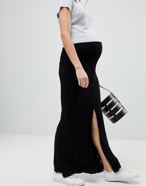 Asos maternity maxi skirt clearance, ASOS DESIGN Maternity maxi skirt with button front and split detail clearance