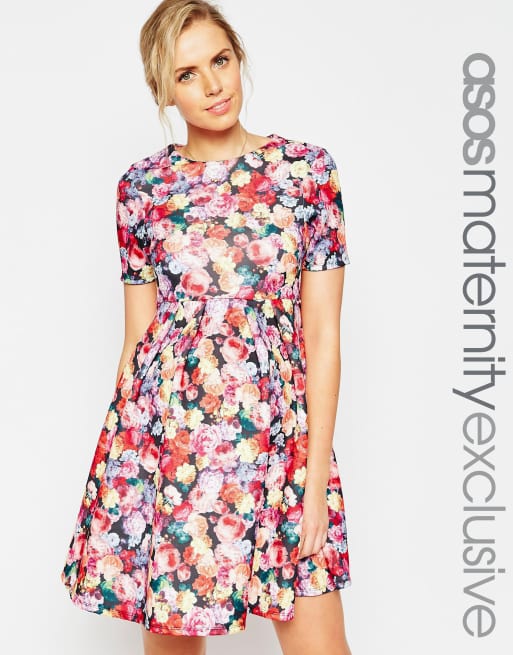 Asos maternity skater dress clearance, ASOS Maternity Exclusive Scuba Skater Dress in Bright Floral Print clearance