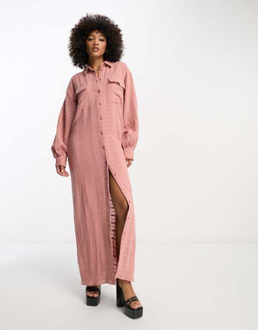 ASOS DESIGN textured check maxi shirt dress in terracotta