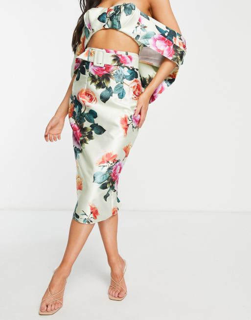 ASOS LUXE satin midi pencil skirt in floral print part of a set