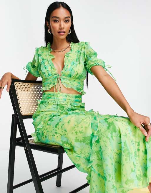 Asos midi skirt set clearance, ASOS DESIGN bias midi skirt set with ruffle and button detail in clearance