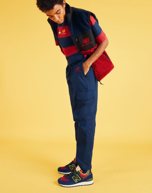 New Balance 574 trainers in navy and red exclusive to ASOS