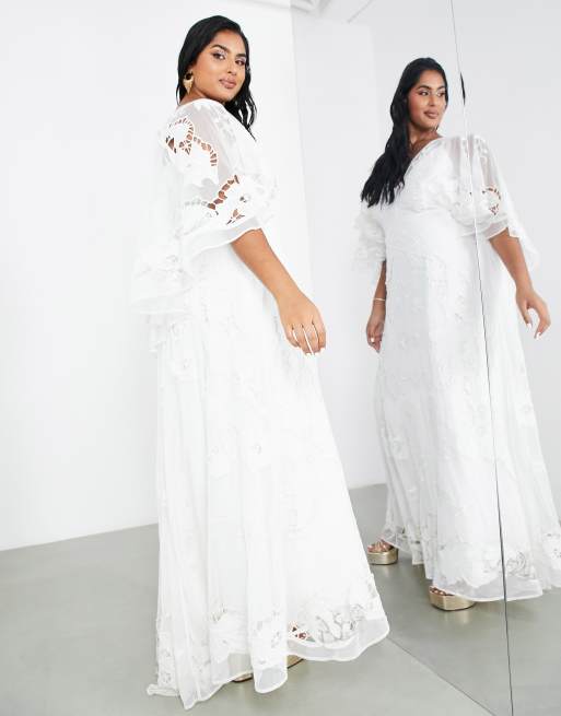 Asos plus size wedding dresses clearance, ASOS DESIGN Curve Amelia cutwork embroidered wedding dress with kimono sleeve clearance