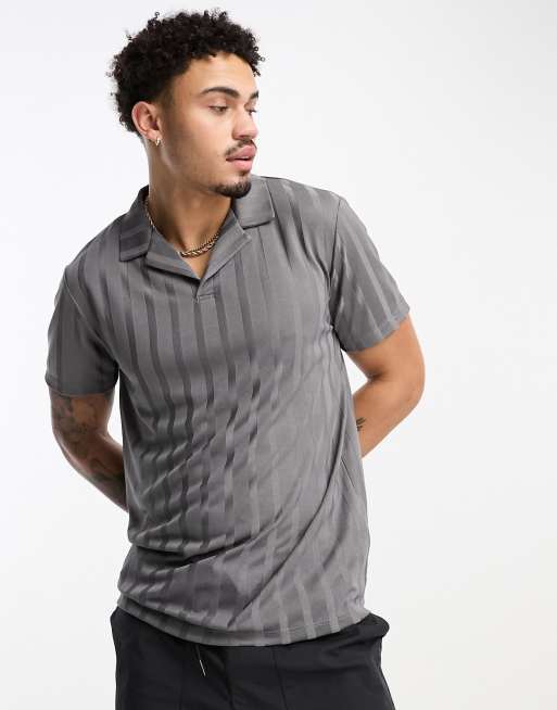 Asos polo shirts clearance, ASOS DESIGN polo shirt in grey shiny rib clearance