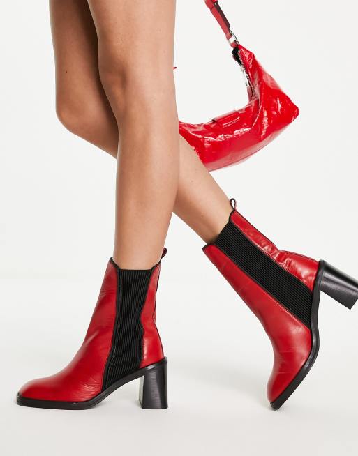 Asos red ankle boots clearance, ASOS DESIGN Ratings leather chelsea boots in red clearance
