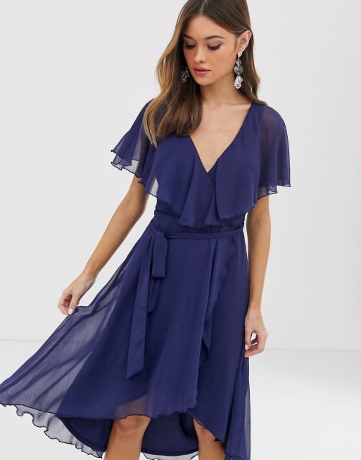 Asos robe cocktail bleu marine clearance, ASOS DESIGN Robe mi longue ourlet plongeant avec cape au dos Bleu marine clearance