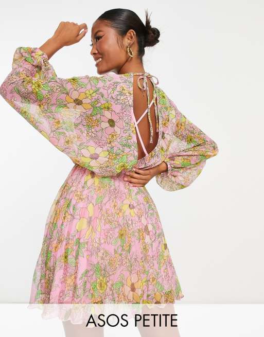 Asos robe jaune clearance, ASOS DESIGN Petite Robe courte pliss e Jaune fleuri clearance
