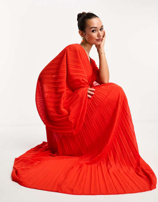 ASOS DESIGN Robe pliss e longue manches oversize Rouge