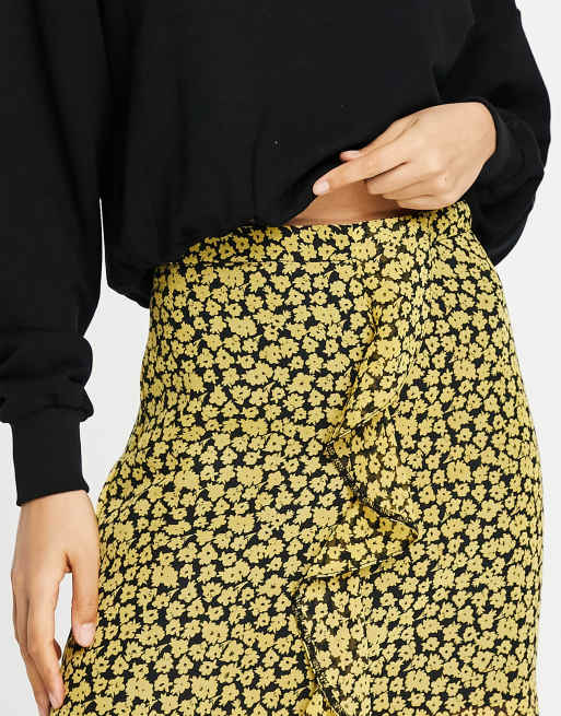Asos ruffle midi skirt clearance, ASOS DESIGN Petite ruffle midi skirt in ochre floral print clearance