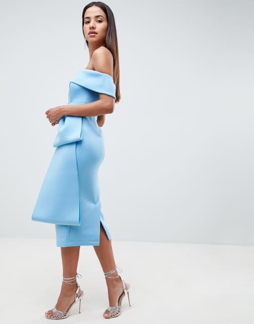 ASOS WEDDING Scuba Off The Shoulder Midi Prom Dress