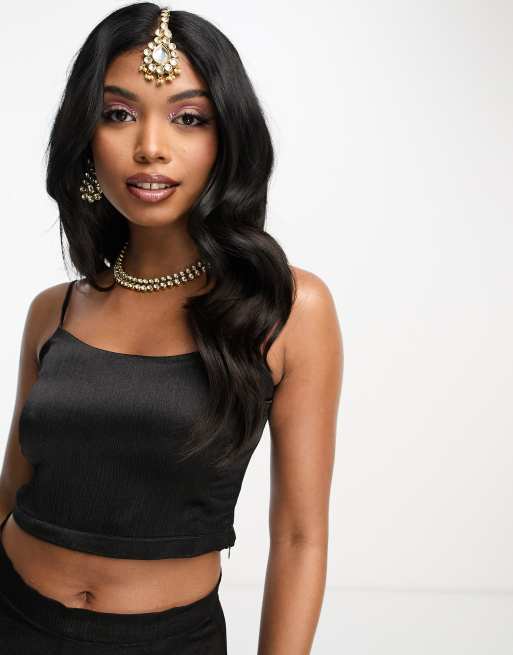 Asos spaghetti strap top clearance, Kanya London Lehenga spaghetti strap crop top in black ASOS clearance