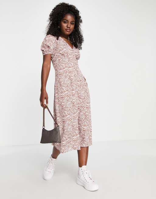 Wednesday s Girl button through midi tea dress in tonal pink zebra