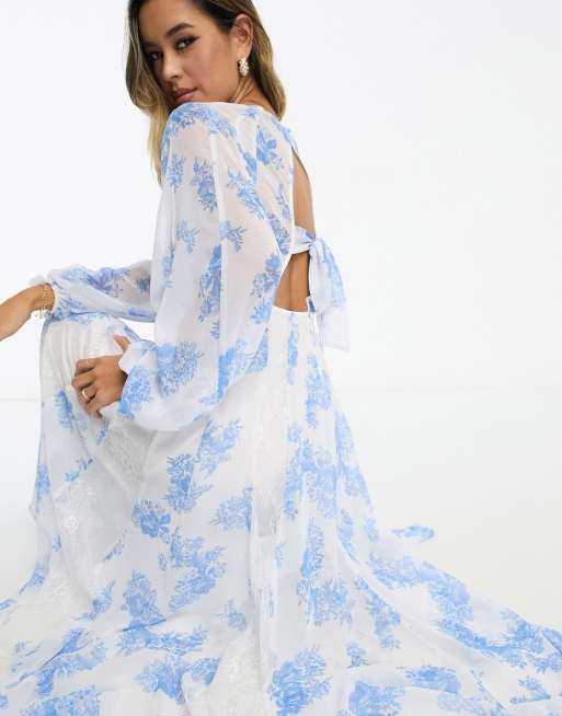 ASOS DESIGN lace insert godet maxi dress in blue floral print ASOS