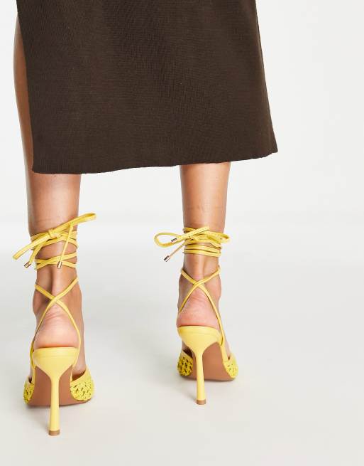 ASOS DESIGN Preston woven tie leg high heeled shoes in yellow