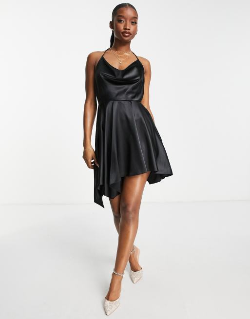 ASOS DESIGN high neck mini skater dress with asymmetric hem