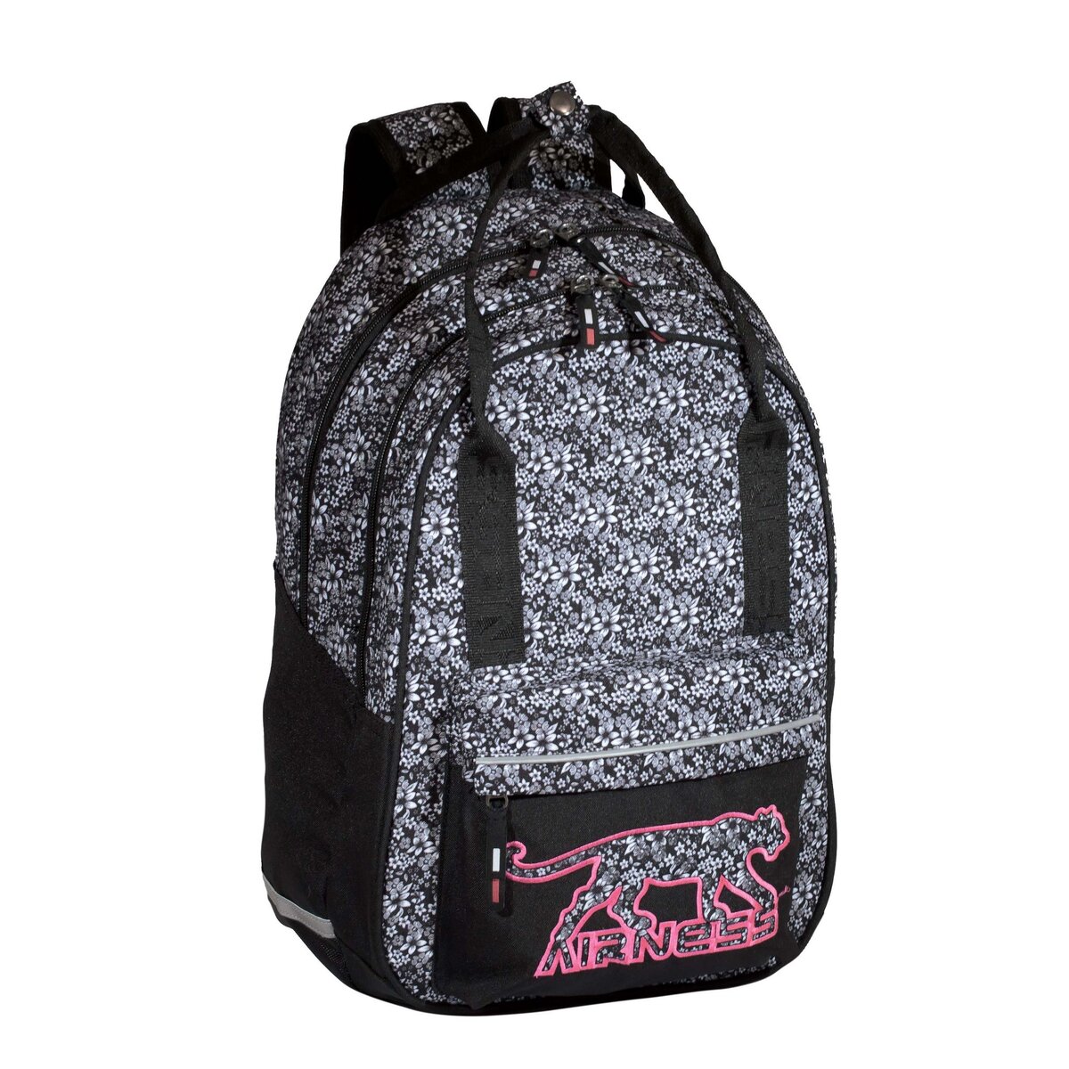 Auchan sac a dos fille clearance, AIRNESS Sac dos 2 compartiments fille Camille noir et blanc clearance