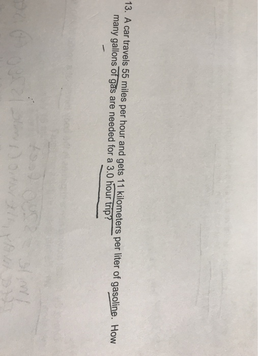 Solved 13. A car travels 55 miles per hour and gets 11 Chegg