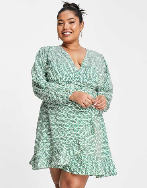 AX Paris Plus wrap mini skater dress in green polka dot ASOS