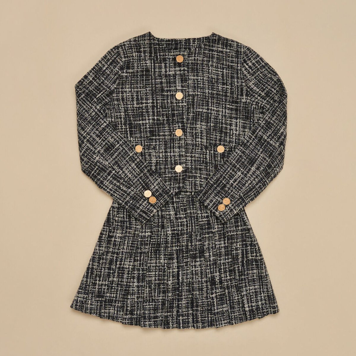 Baby Girl Contrast Embroidered Mesh Binding Trim Tweed Jacket and Skirt