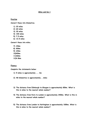 Year 6 Miles and Km Teaching Resources