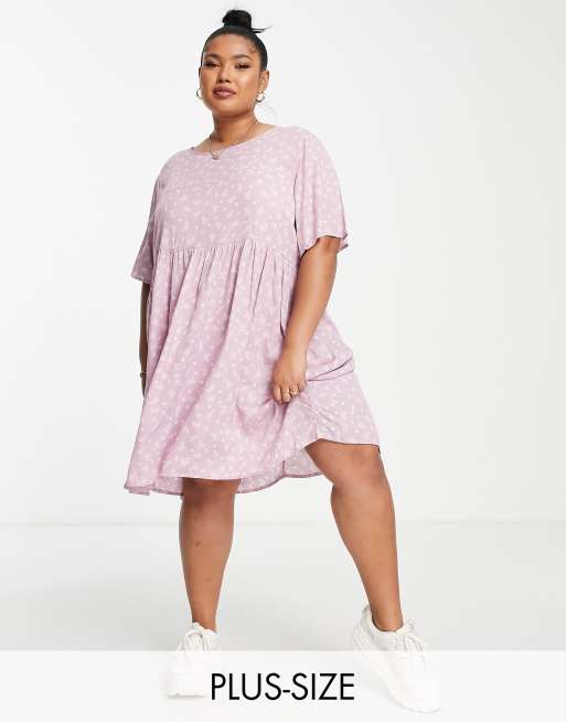 Cotton On Curve baby doll smock dress in ditsy floral pink