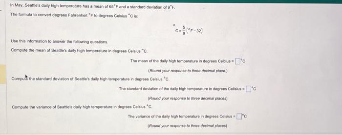 Solved In May. Seattle s dally high temperature has a mean Chegg