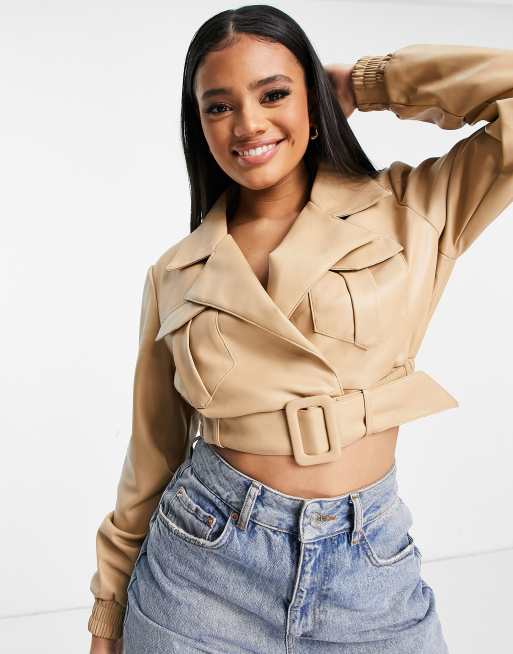 Puff Sleeve Crop Jacket Clothing in Beige Get great deals at JustFab